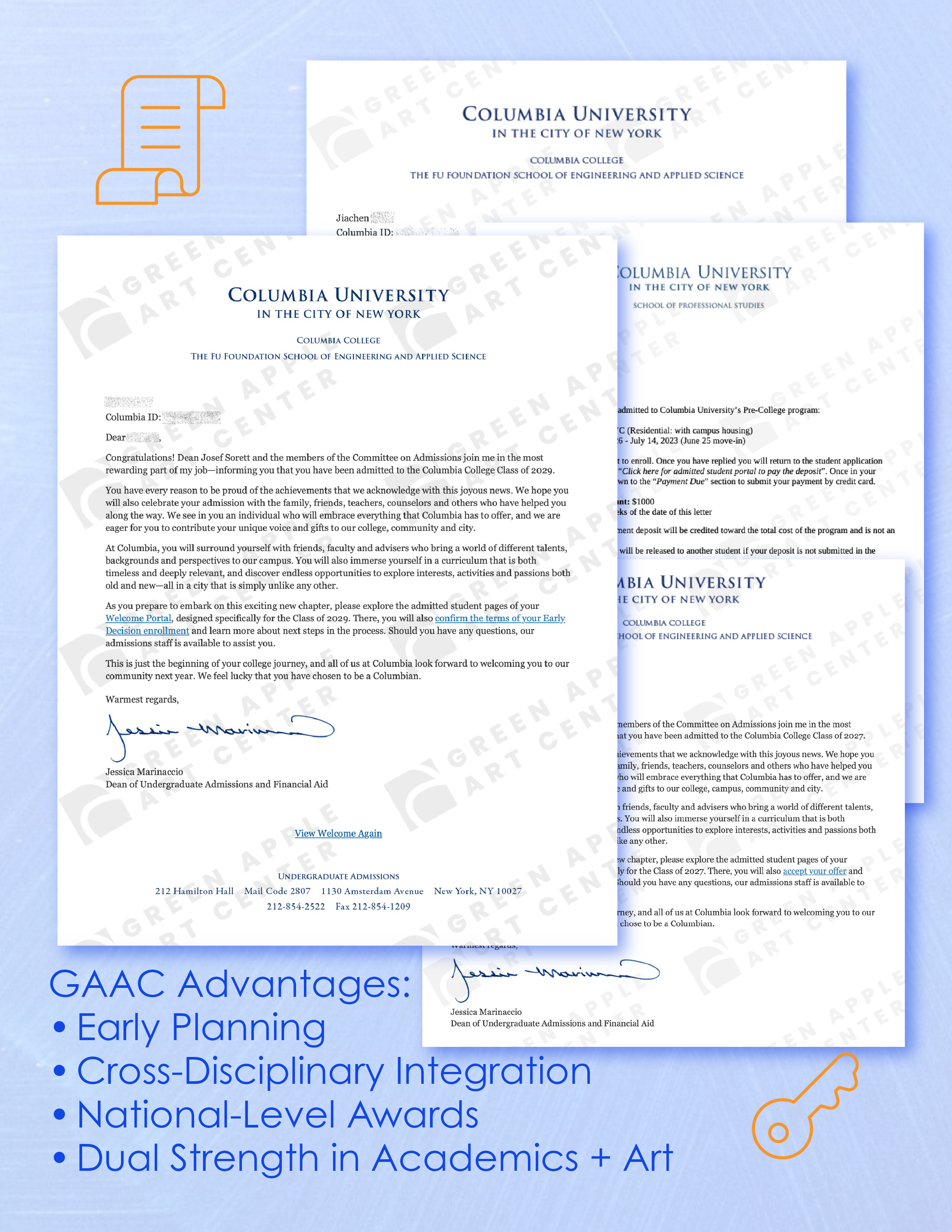 Students from Green Apple Art Center (GAAC) have repeatedly won the prestigious Scholastic Art & Writing Awards, taking home coveted Gold Key prizes. Even more exciting, our students have also gained Early Decision acceptance to Columbia University’s Columbia College with their standout portfolios.
