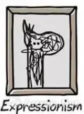 表现主义,是指艺术中强调表现艺术家的主观感情和自我感受,而导致对客观形态的夸张、变形乃至怪诞处理的一种思潮,用以发泄内心的苦闷。上图凌乱的长颈鹿就是该流派的真实写照。